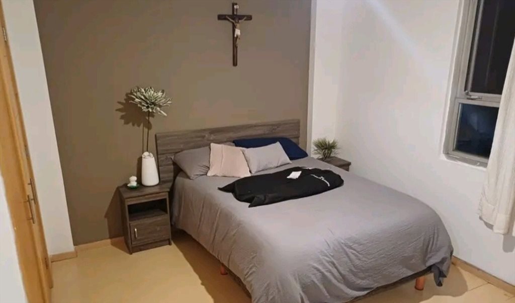 Departamento con 2 habitaciones, cocina integral, refri, área de lavado con lavadora, el baño NO es compartido, los cuartos tienen piso de duela, base, colchon, librero y closets muy amplios.