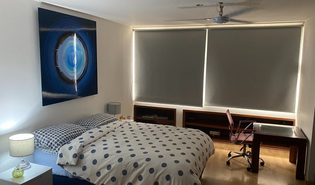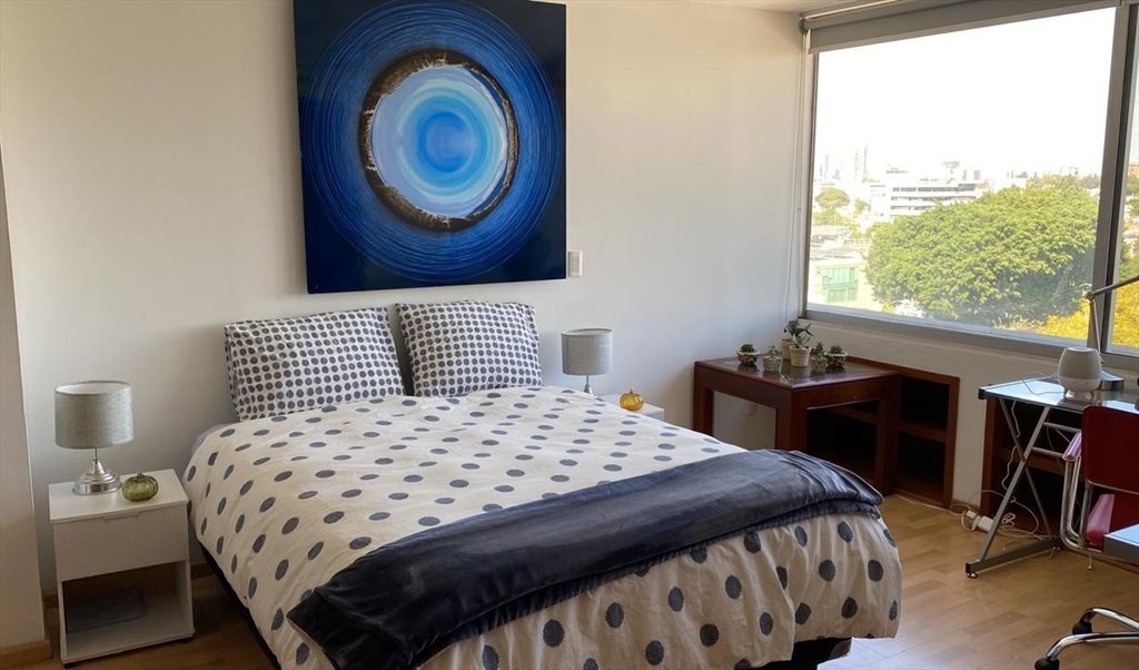 Se busca roomie para habitación amplia en sexto piso. Cama Queen nueva, excelente espacio en el closet y vista panorámica urbana. Baño externo a habitación para uso privado.