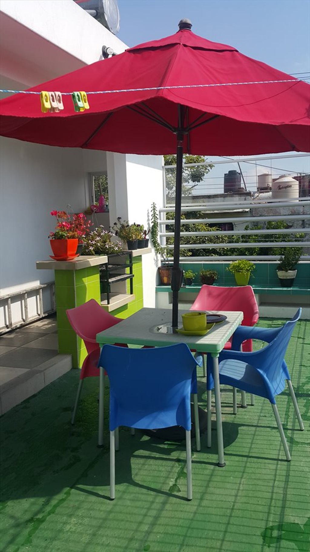 Se comparte solo lavadora y terraza con asador y parasoles.