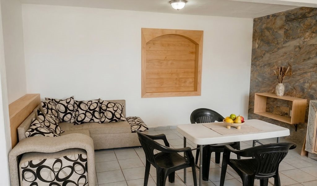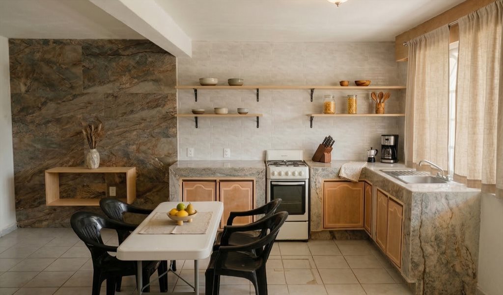 - *Áreas Comunes*: - Cocina Completa equipada con refrigerador, microondas, estufa, cafetera, utensilios de cocina y vajilla, comedor, sala con TV, patio, terraza y jardín para relajarte y disfrutar del exterior.
