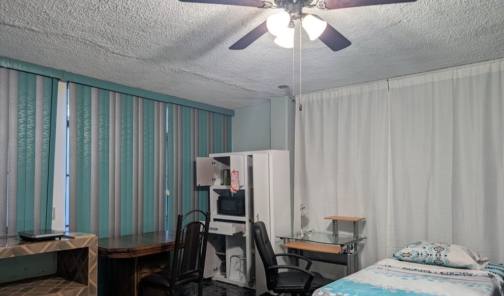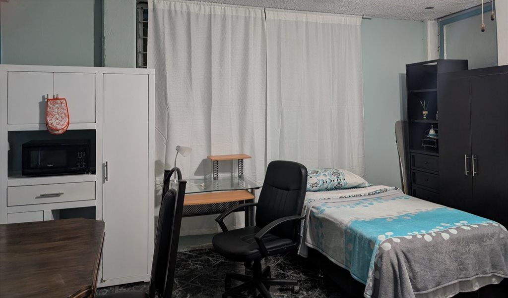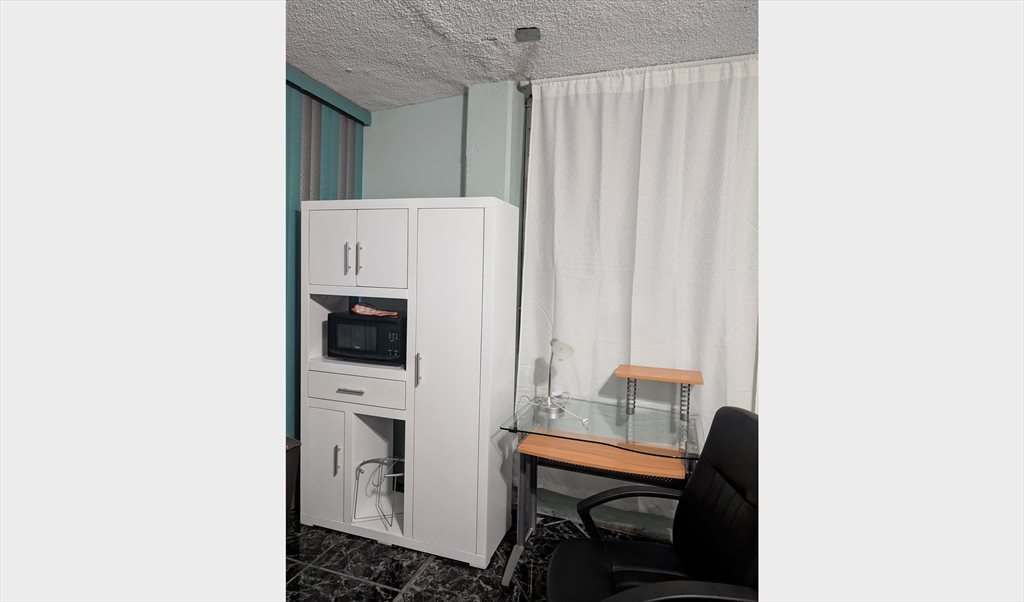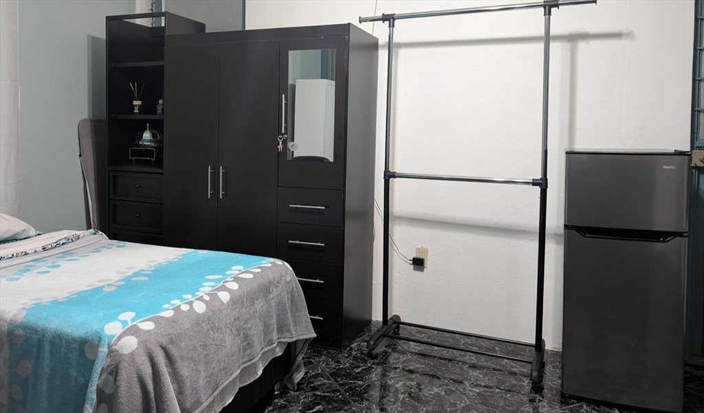 No se admiten drogas, no alcohol, no fumar, no mascotas, no niños y no hacer ruido fuerte después de las diez de la noche. Por hábito, higiene y salud deberás mantener limpia tu habitación y lo que ensucies. El cuarto tiene su baño completo solamente para tu uso personal, una cama individual, ropero mediano, colgador de ropa, cajonera vertical con espacio arriba para libros u otras cosas, ventilador de techo, escritorio de cristal, silla de escritorio, lámpara de escritorio, burro de planchar, plancha, refrigerador chico, mesa para comer con su silla, horno de microondas, despensero con porta garrafón, pretil para lavar trastes, escurridor de trastes, licuadora, tabla para picar verduras o frutas, sandwichera, extractor de jugos eléctrico, cafetera, una parrilla de inducción, dos sartenes de diferente tamaño para la parrilla de inducción, utensilios de cocina, platos, tazas y vasos. Todo lo anterior no se comparte con nadie.