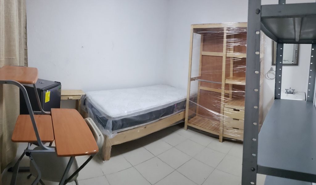 Cuenta con lo siguiente TODO NUEVO: CLOSET CON TRES CAJONES, BURÓ, CAMA INDIVIDUAL, FRIGOBAR.