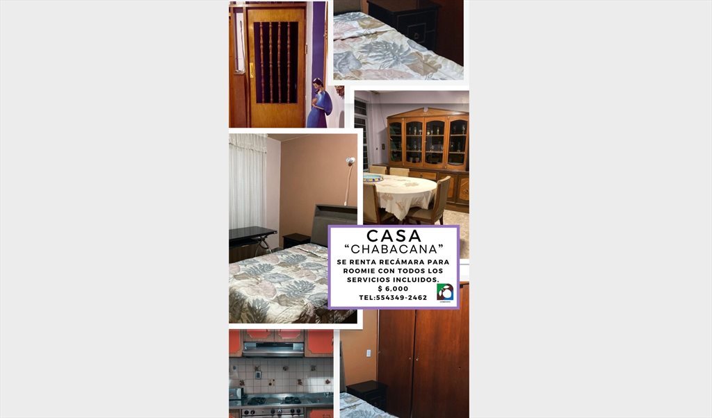 Rento bonita y amplia habitación amueblada, con closet de madera de 2.10x 3 m, base con colchón, escritorio y lámpara con piso de loseta. La casa cuenta con baños, cocina equipada, sala, comedor y recibidor en zona muy céntrica y comunicada. A una cuadra de metro chabacano (3 líneas) super mercado soriana y a una cuadra eje 3. Solicito contrato de 6 meses de estadía mínima, copia de ine, deposito de un mes. Solo personas honorables.