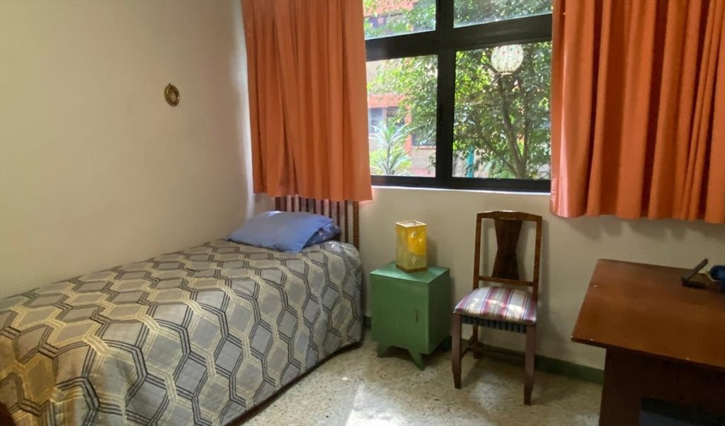 La habitación es para una persona . cuenta con cama individual y closet. tiene ventana que deja entrar luz de día, especialmente por las tardes.Y escritorio.