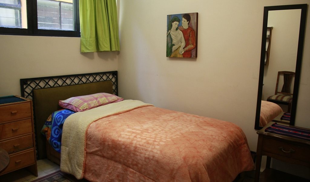 La habitación es para una persona . cuenta con cama individual y closet. tiene ventana que deja entrar luz de día, especialmente por las tardes.Y escritorio.