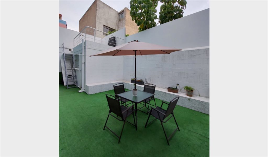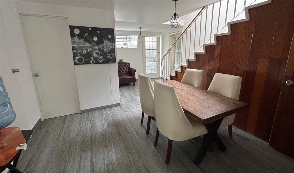 La casa tiene 400 m2 y 6 habitaciones. El baño solo se comparte con una habitación. Si buscas un lugar amplio, con zonas comunes, seguro y tranquilo, en nuestra casa serás muy feliz.
