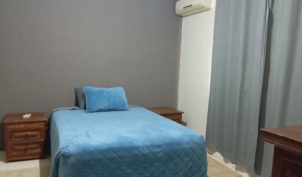 Solo para mujeres profesionales. La casa se ubica en una zona habitacional muy tranquila y con sociedad vecinal respetuosa y bien organizada. Por lo tanto, el mismo respeto se espera de los huespedes hacia inquilinos y vecinos. Cada recamara cuenta con amplio closet y minisplit. El area comun es donde se cuenta con TV. Cocina equipada. Una recamara con cama king size y la otra habitacion con cama matrimonial. Se encuantra un parque con areas verdes, zona p/ ejercitarse, una caseta con personal de seguridad municipal y un Oxxo. (Aun mas cerca, hay una tiendita de abarrotes)