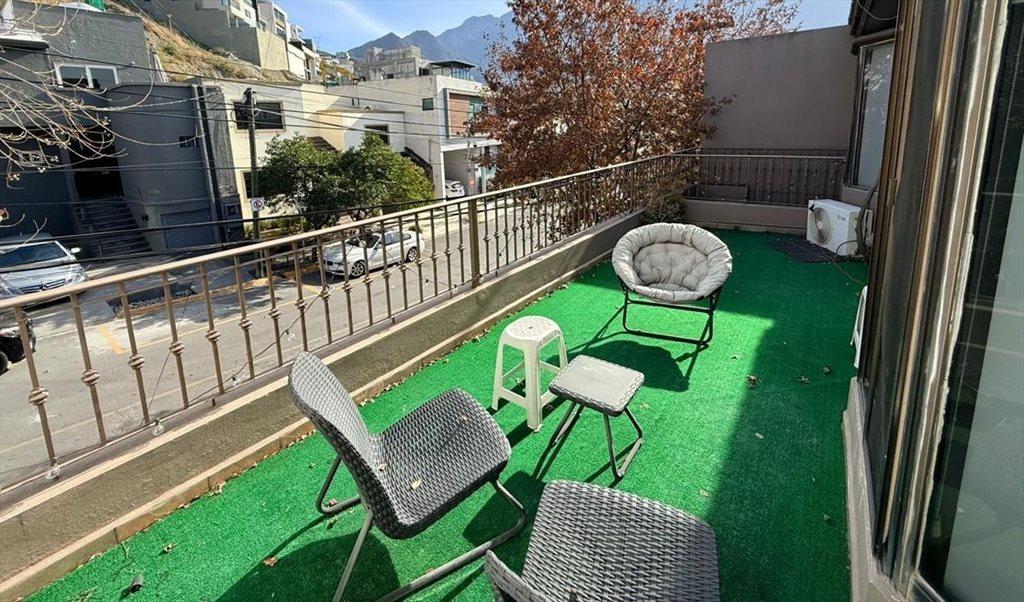Sala con balcón y terraza compartida con vistas a la sierra