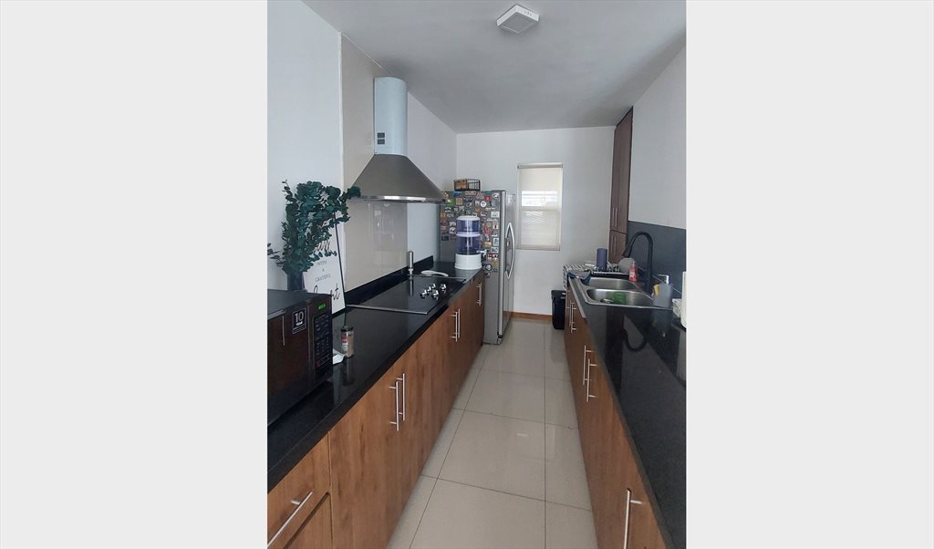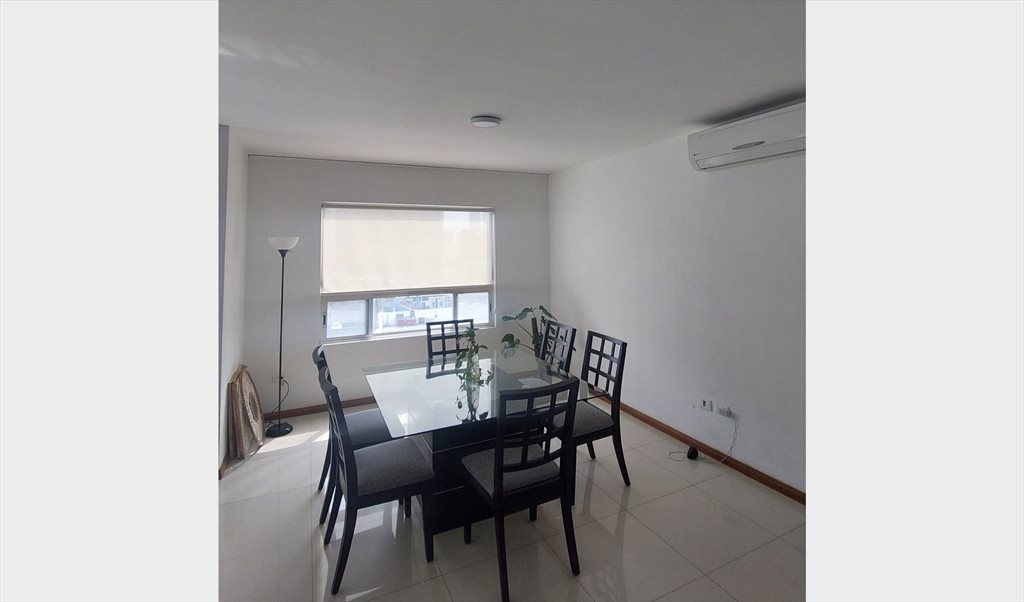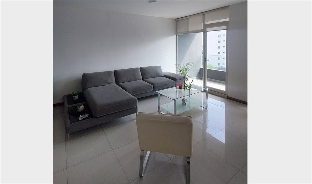 El departamento cuenta con sala, comedor, cocina integral, refrigerador, estufa, microondas, centro de lavado y aire acondicionado en áreas comunes.