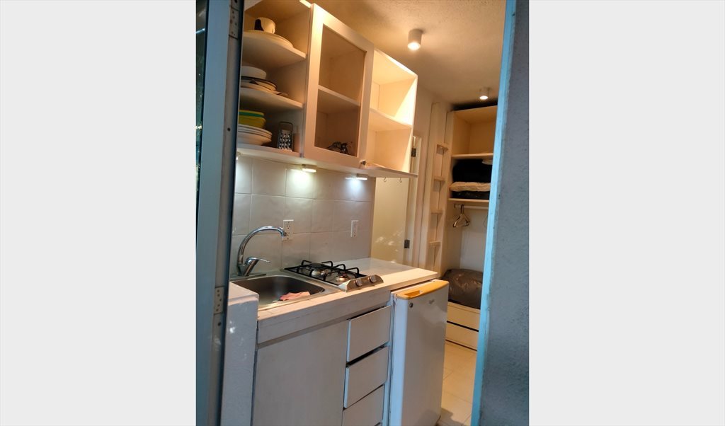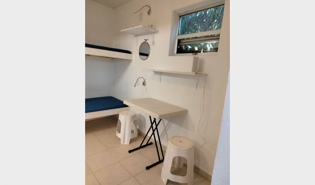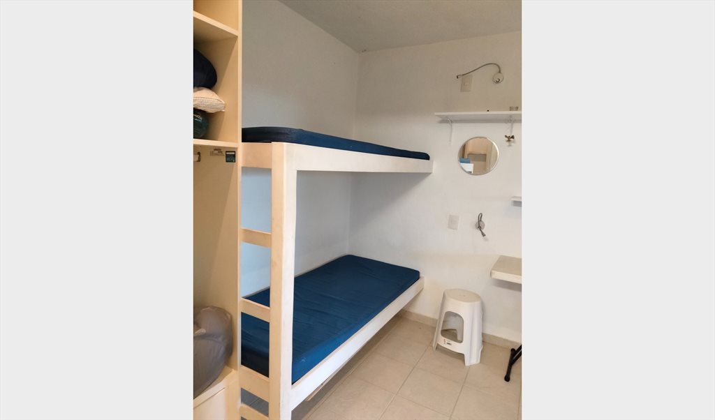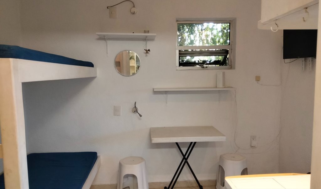 El cuarto tiene: literas, baño completo, cocineta con estufa 2 hornillas, fregadero.