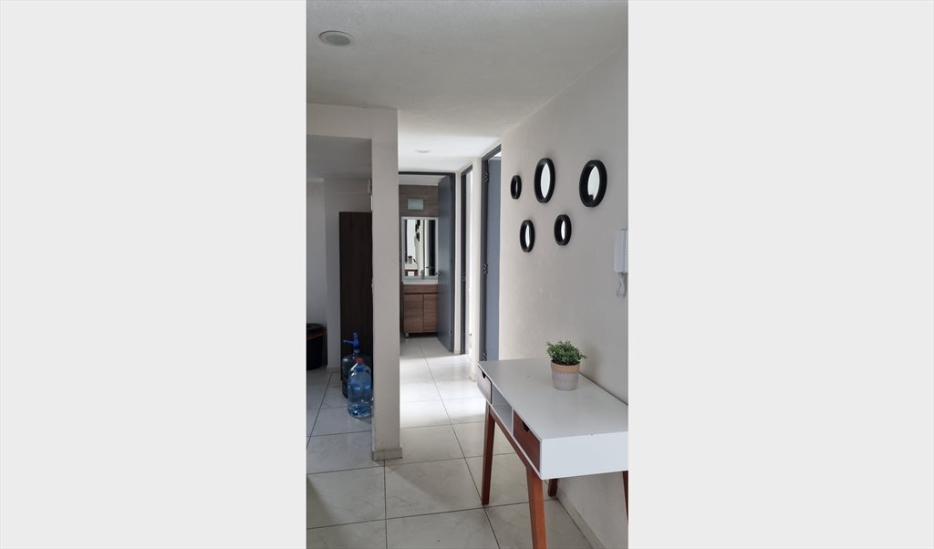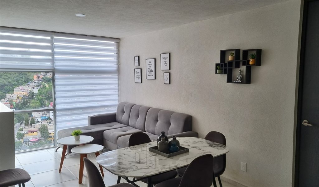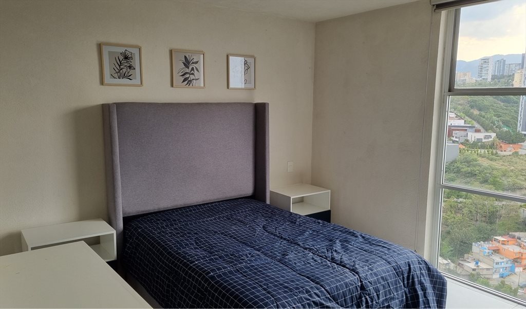 Tranquila habitación amueblada con baño privado, espaciosa, en piso 18 con excelente vista, departamento amueblado y equipado, servicios incluidos, cajón de estacionamiento; edificio con gimnasio, jardines, salón de fiestas, a 5 minutos de interlomas /UP Bosque Real y a 15-20 de Santa Fe. Zona con todo tipo de servicios. Estacionamiento independiente, seguridad.