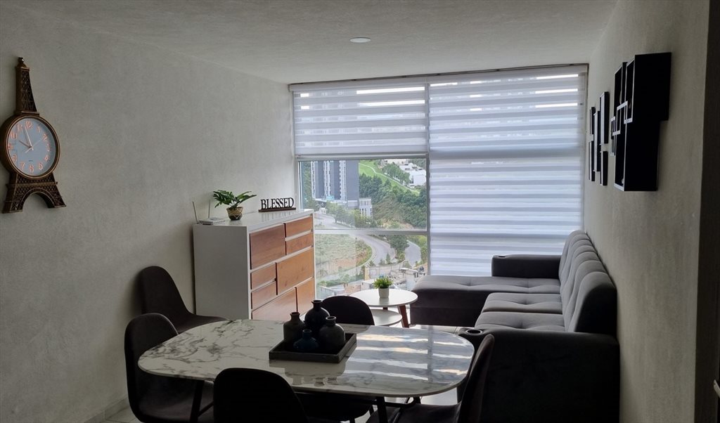 Tranquila habitación amueblada con baño privado, espaciosa, en piso 18 con excelente vista, departamento amueblado y equipado, servicios incluidos, cajón de estacionamiento independiente; edificio con gimnasio, jardines, salón de fiestas, a 5 minutos de interlomas /UP Bosque Real y a 15-20 de Santa Fe. Zona con todo tipo de servicios, seguridad.