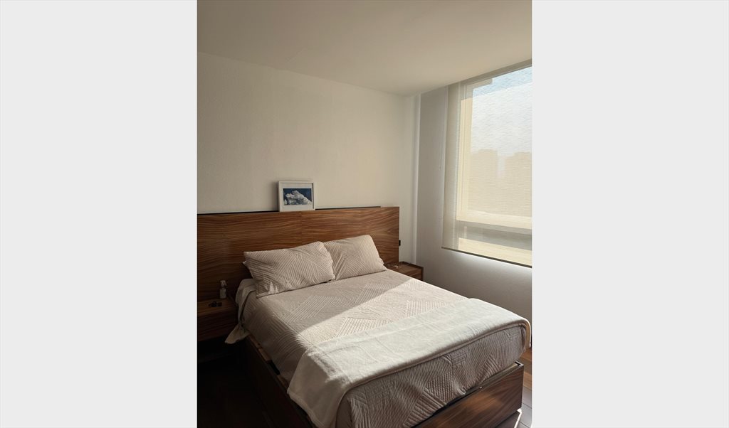 Habitación amueblada, con áreas comunes para usar (área de lavado, cocina, sala, comedor)