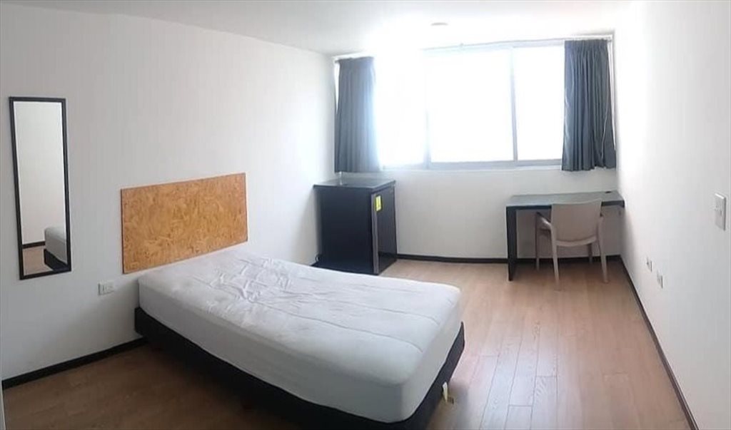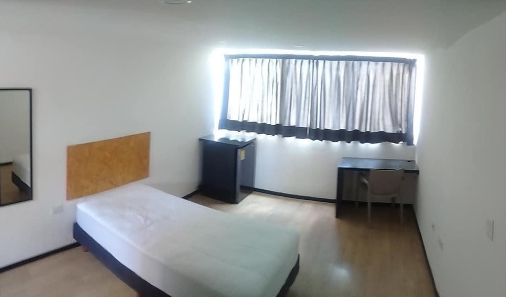 Incluye cama individual, mesa escritorio, closet, refrigerador mediano.