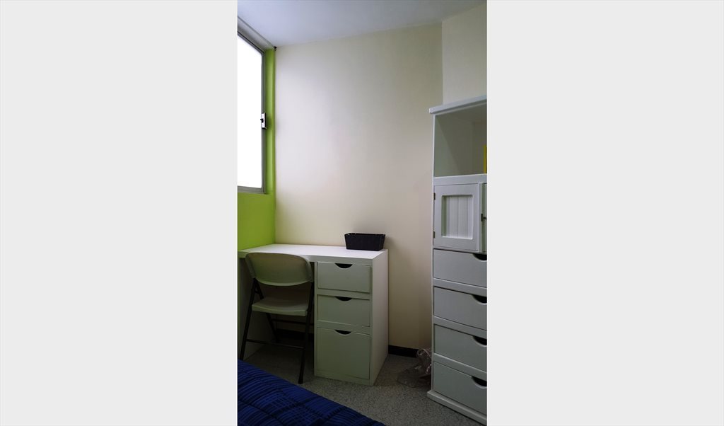 Cada dormitorio tiene lo necesario para tu descanso, además cuenta con escritorio para que tus actividades den el mejor fruto.