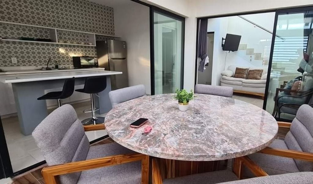 La casa cuenta con sala, cocina equipada, comedor, mini patio, lavadero, t.v., aire acondicionado e internet.