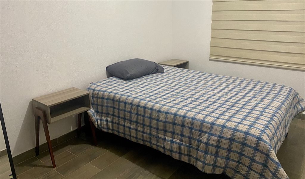 Se renta habitación en zona Palmares / Jurica, privada muy cerca de Plaza Antea, Parque Industrial Querétaro, 5 de Febrero etc. La habitación se renta en $3,500 más servicios, la casa cuenta con todos los servicios y equipo necesario, refrigerador, lavadora, secadora, estufa, sala, comedor, TV en sala, utensilios de cocina etc. En la casa hay una mascota pequeña, vivimos una pareja de profesionistas 30 años. Buscamos solo rentar una habitación la cual tiene baño propio asignado, el cuarto tiene cama matrimonial, buros, closet, ventilador y espejo. Es un ambiente profesionista y buscamos gente responsable y respetuosa. La privada cuenta con alberca, un pequeño gimnasio etc.