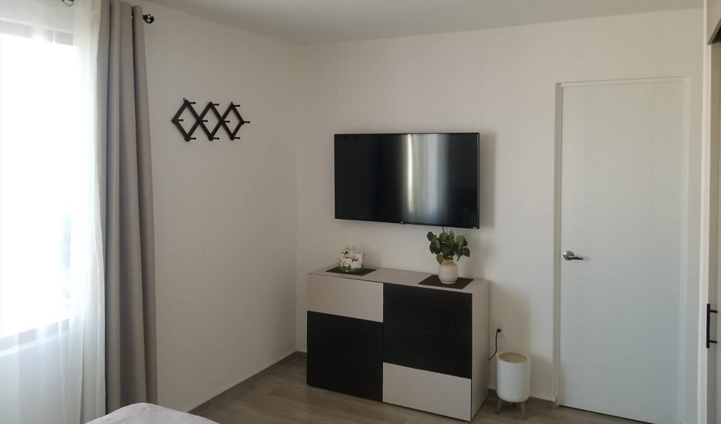 Recámara amplia con colchón nuevo, baño propio con su tocador y espejo grande, closed de pared a pared, cortinas black out de piso a techo, television 32", lampara de noche. Servicos incluidos: internet alta velocidad, luz, agua, si te gusta fumar o relajarte se encuentra una palaba con sillas a un lado de la casa, fraccionamiento con seguridad privada, gymnacio al aire libre, mercados, fondas de comida, oxxo, carnicerias, papeleria, fruterias, etc. en corto, ubicacion en Urbi Villa del Real sección dos, Condominio Zaera.