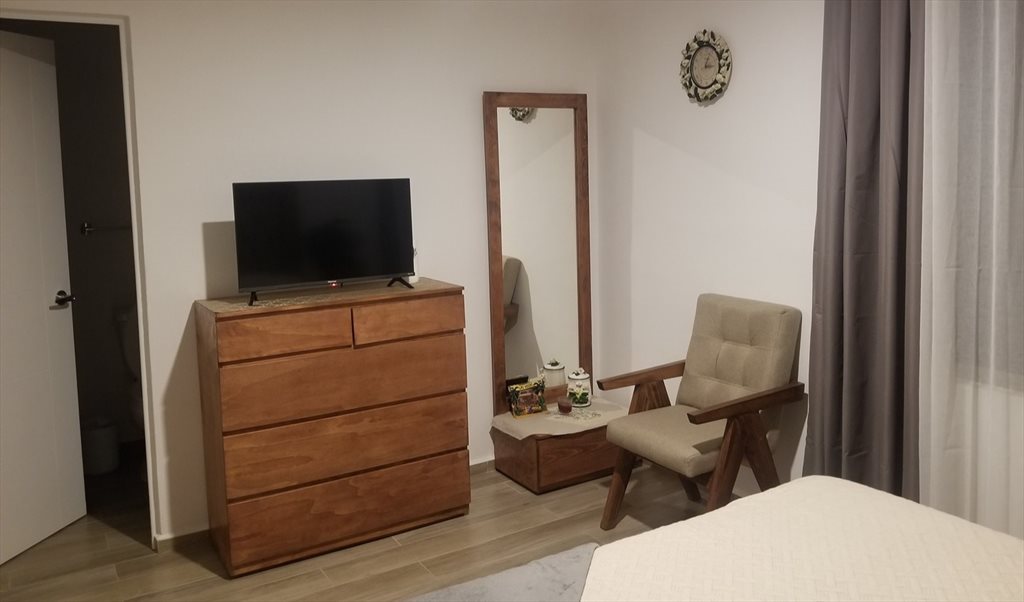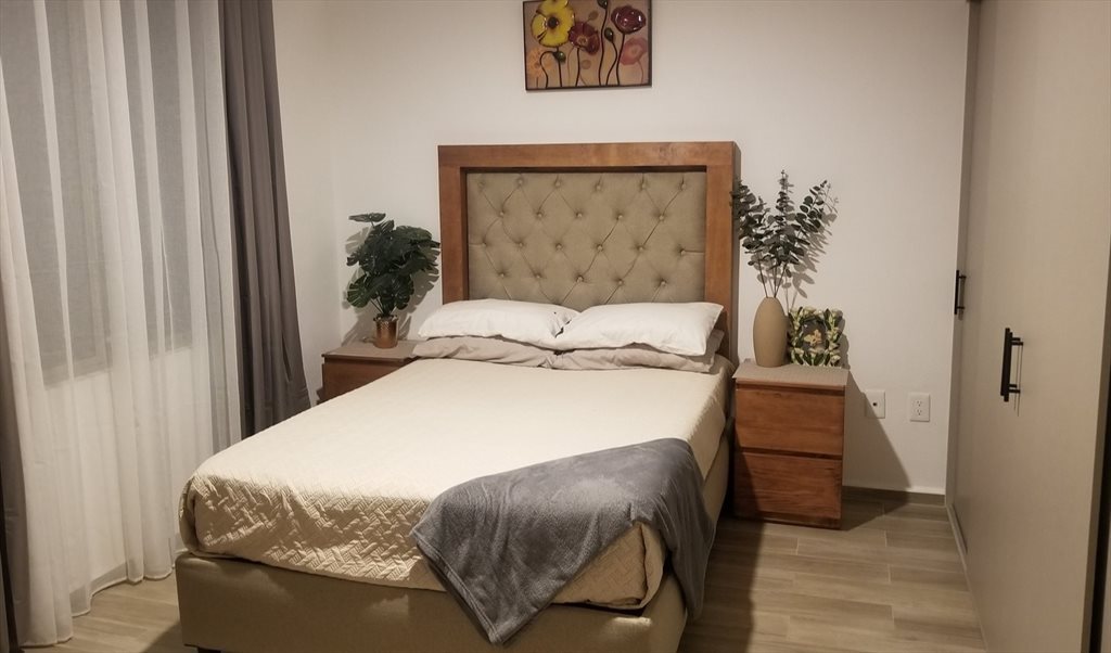Recámara nueva amplia con colchón nuevo, baño propio, clased de pared a pared, internet alta velocidad, palapa a un lado de la casa y seguridad privada. Ubicada en Urbi Villa del Real sección dos