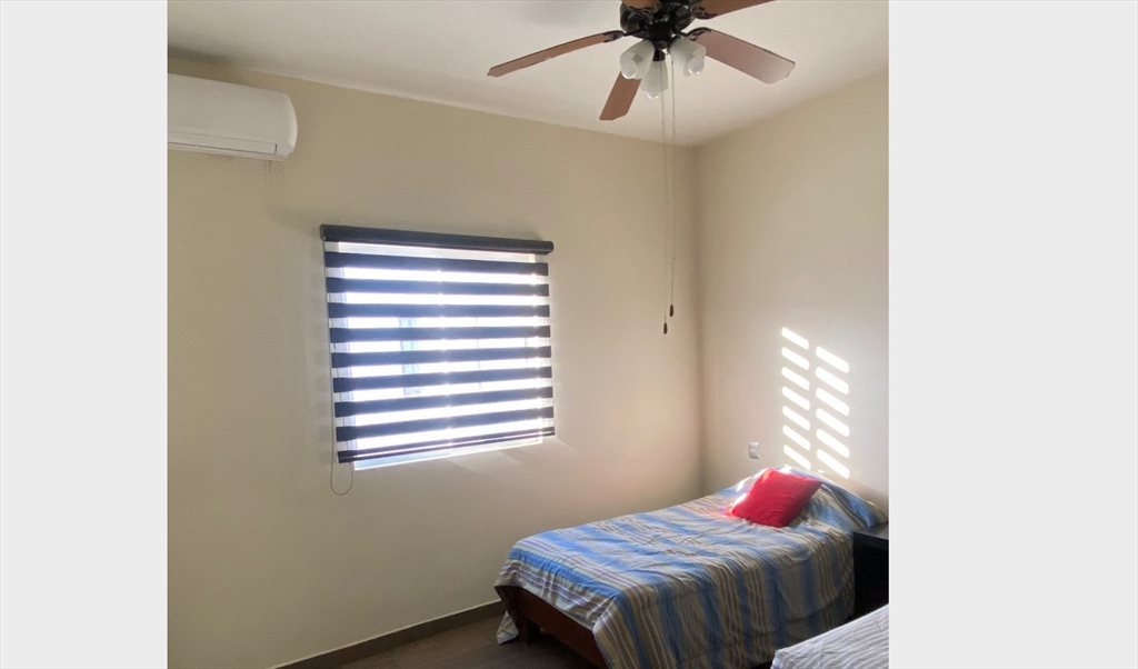 Cuenta con cocina completa, utencilios, estufa, refri, lavadora y secadora, ventiladores de techo, clima frío y calor en cada recámara para ti, cama en la habitación o tu puedes traer tu cama si gustas.