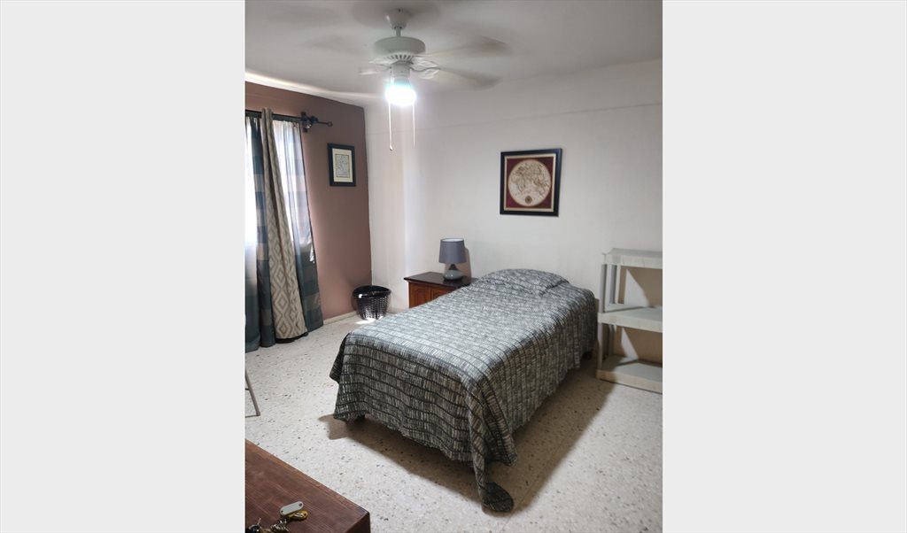 La habitaciones son amplias y estan amuebladas y cuentan con abanico de techo, cama matrimonial vestida, colchón de buena clase, closet amplio, buró, lampara, escritorio, sillas, etc.