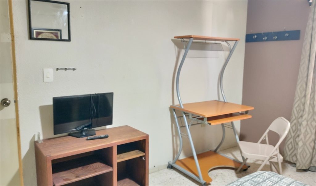 La habitacion es exclusiva para el inquilino ( 1 sola persona por habitación) y comparte baños y cocina equipada.