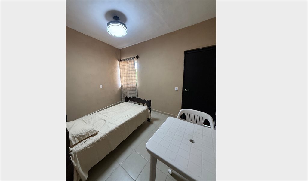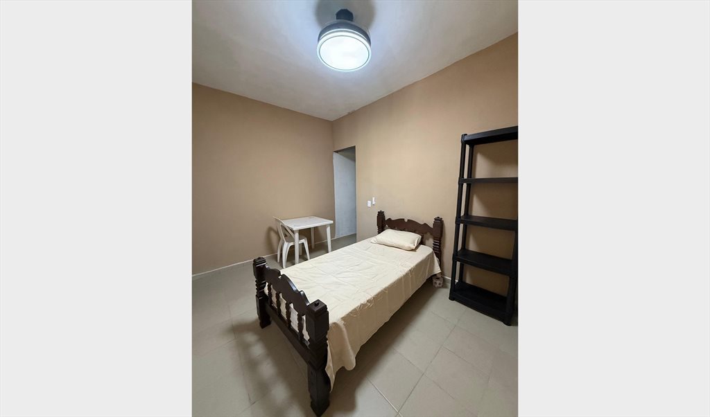 Renta de habitación con sanitario independiente, cama individual, abanico de techo,y un pequeño estante para la ropa