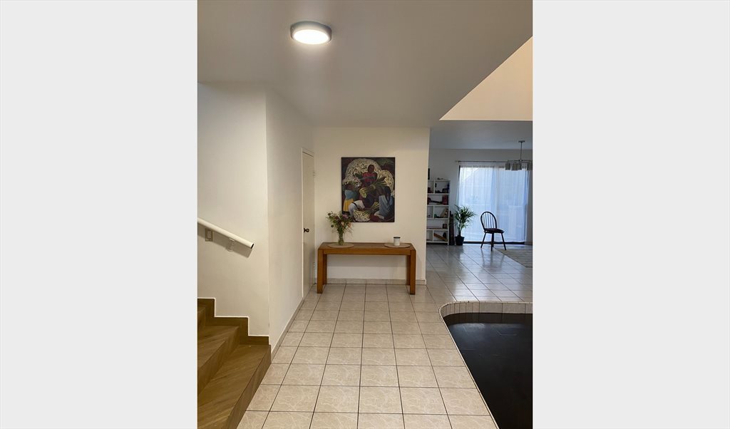 Mi esposo y yo rentamos habitación grande con cama King, vestidor y baño privado, A/C y calefacción en la recámara, y estacionamiento con cochera eléctrica. Áreas comunes como salita, barra-comedor y cocina. Lavadora para carga ligera (no cobijas grandes, ni carga pesada) y Secadora. Tenemos una gatita dentro de la casa y una perrita que vive en el patio y que entraría ocasionalmente a nuestra recámara. Servicio incluidos: Gas e Internet. Agua y Luz se paga aparte. No se aceptan mascotas.
