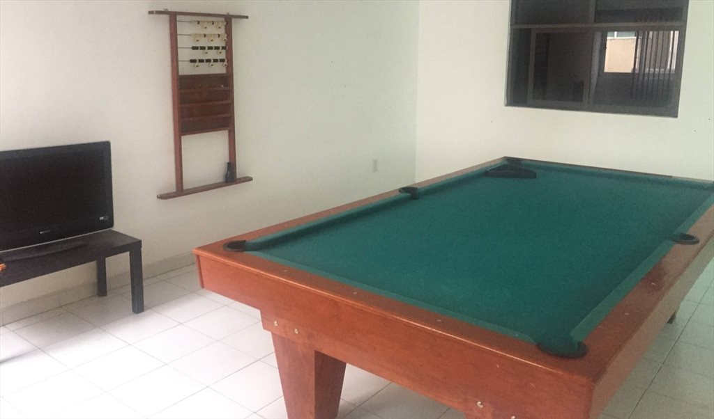 El departamento cuenta con sala-comedor, cocina completamente equipada, cuarto de juegos, mesa de billar, patio trasero con área de lavado equipada con lavadora, recibidor con baño, cajón de estacionamiento. El fraccionamiento tiene vigilancia 24 horas con CCV, áreas verdes, estacionamiento para visitas con capacidad para 50 automóviles.