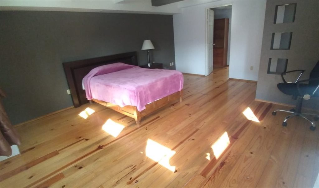 Amplia habitación para una persona, base cama matrimonial, vestidor , baño privado, escritorio, librero, buena ventilación e iluminación natural, ambiente propio para descansar.