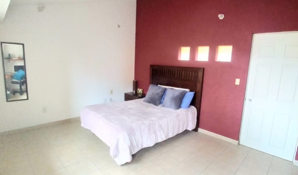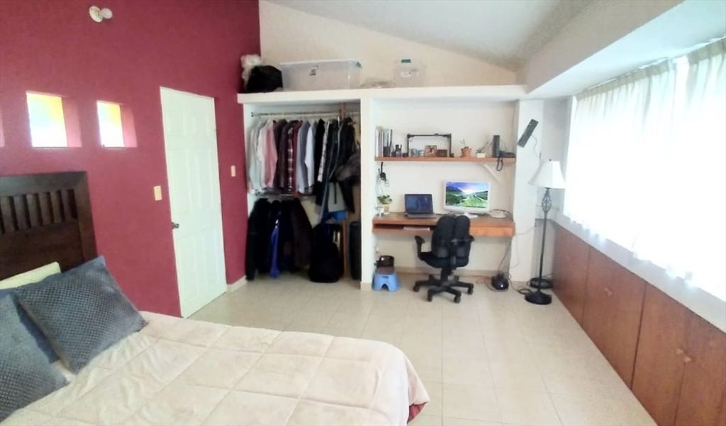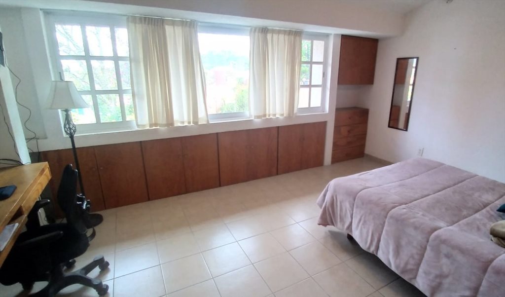 Recámara amueblada con closet, escritorio, comoda, cama matrimonial, bien iluminada y ventilada con vista al jardín . Servicios incluidos en la renta. Ambiente tranquilo propio para descansar.