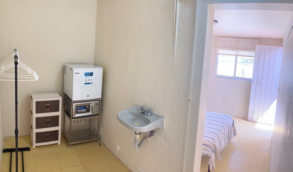 Rento habitación amueblada para una persona, baño propio, en azotea en edificio de condominio con áreas verdes y vigilancia 24hrs. Cerca de Hospital Ángeles del Pedregal, Unidad de Posgrado del ITAM y Hospital PEMEX Picacho, con acceso a pie a múltiples comercios como lavandería, panadería, abarrotes, etc.
