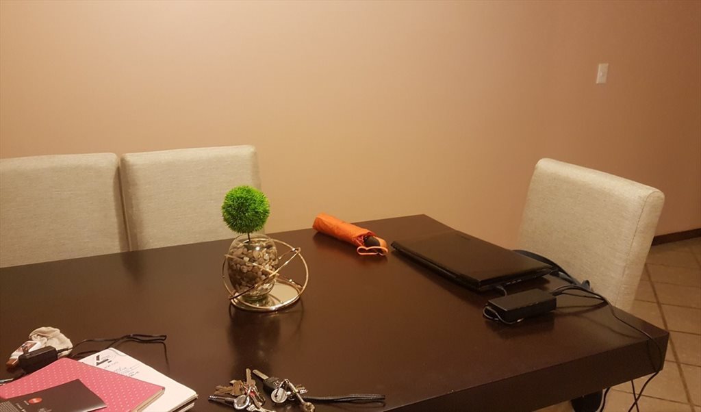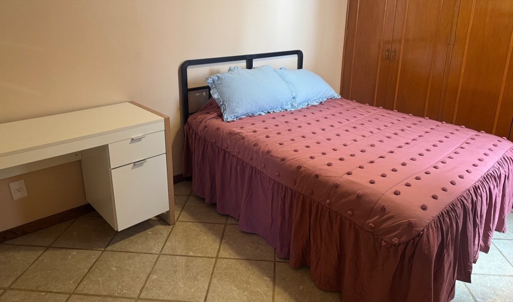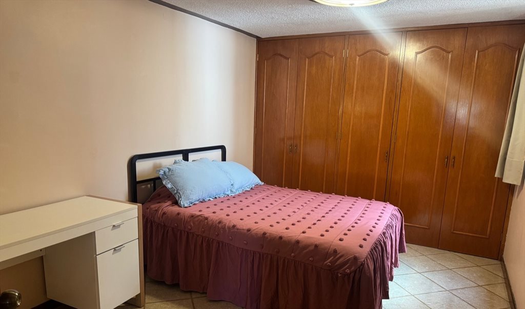 El cuarto es grande con baño privado, en el cuarto hay una cama matrimonial, escritorio y tiene un closet muy amplio