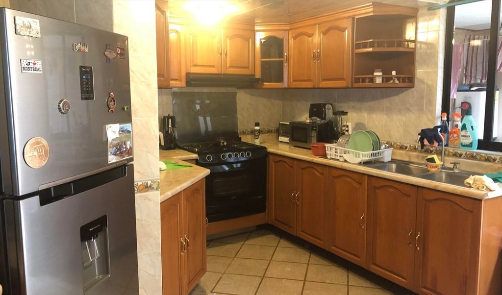 La casa esta amueblada, sala, comedor, cocina equipada y lavadora.