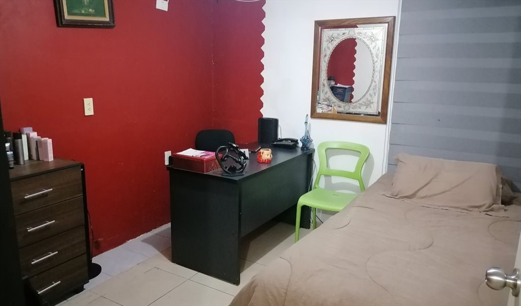 La casa tiene un cochera está bien protegido . Y medio baño abajo un baño completo arriba es compartido . Cuenta con 4 habitaciones que tiene lo necesario cama individual y también internet y un pequeño cosina cuenta refrigerador. Microondas. Estufas . cafetera tetera . Sartenes ollas vajillas vasos . Cuento patio amplió y también lavadora comedor pequeño lo necesario dispongo todo . Además ala vuelta de la casa está un mercado y lavandería. Así como tintorería . A dos cuadras está un bodega de ahorrera está 10 Cucea es la universidad terraza belenes la cima y real Center.3 cuadras eata bancomer .en belenes está bancomer también lateral periférico esta banamex.tambien está cerca plaza andares .lanmark a 10 minutos y pasa transporte 4 rutas pasa