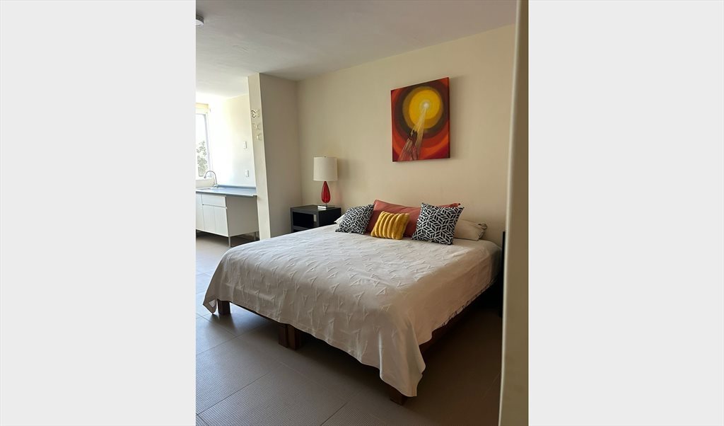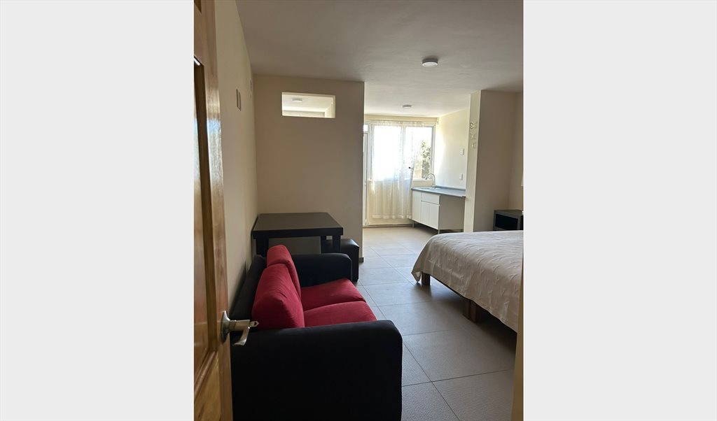Se renta habitación recién remodelada para una persona o pareja. Tiene baño privado, gran closet, Cocineta y cama King Size. Está habitación tiene un balcón con vista al jardín. Se puede alquilar estacionamiento por $500 adicionales. No se incluye servicio de limpieza y lavandería. Ven a conocerla!!