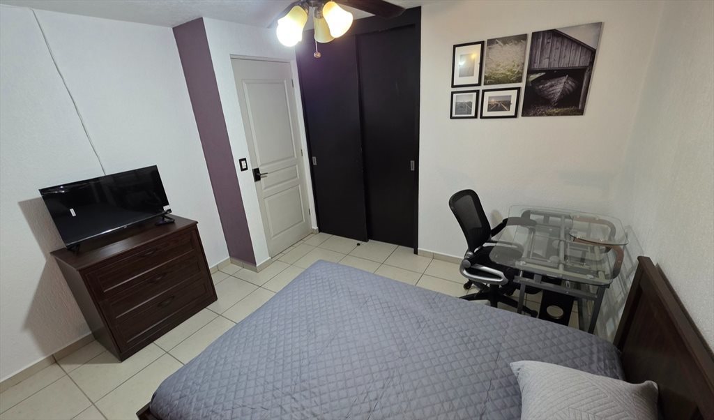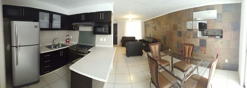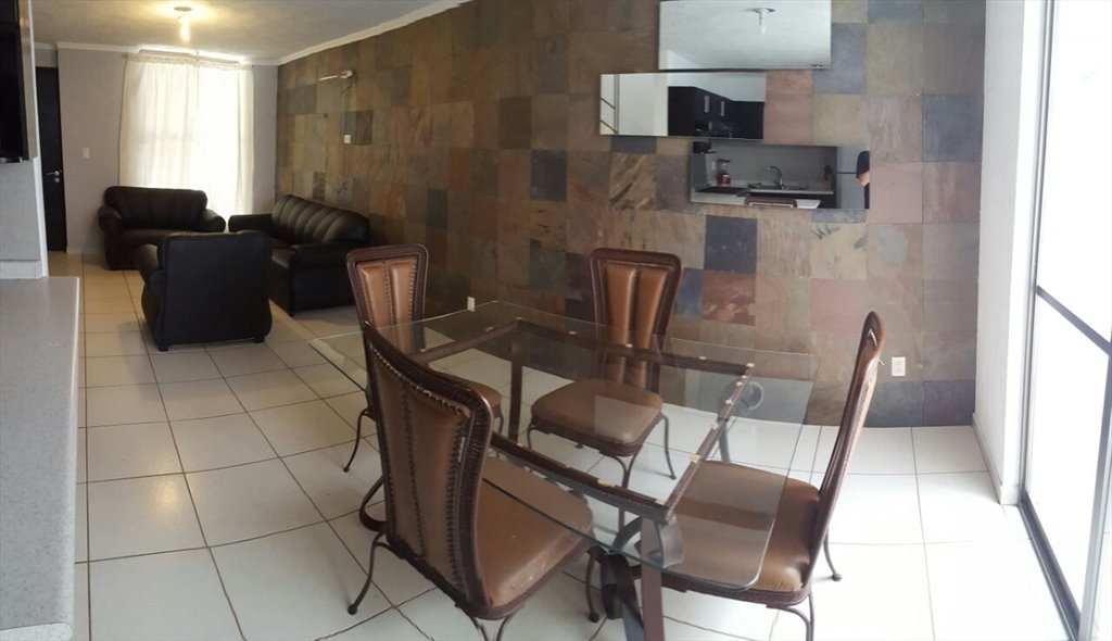 La casa cuenta con 3 habitaciones y 3 baños completos (1 por habitación), completamente amueblado, con refrigerador, lavadora, horno de microondas, trastes, comedor y sala.