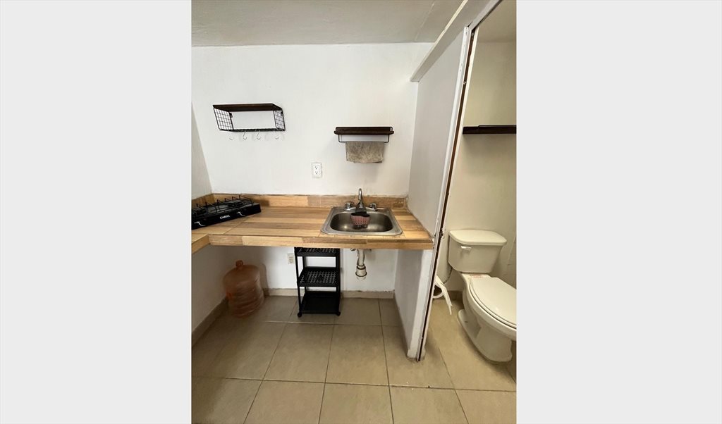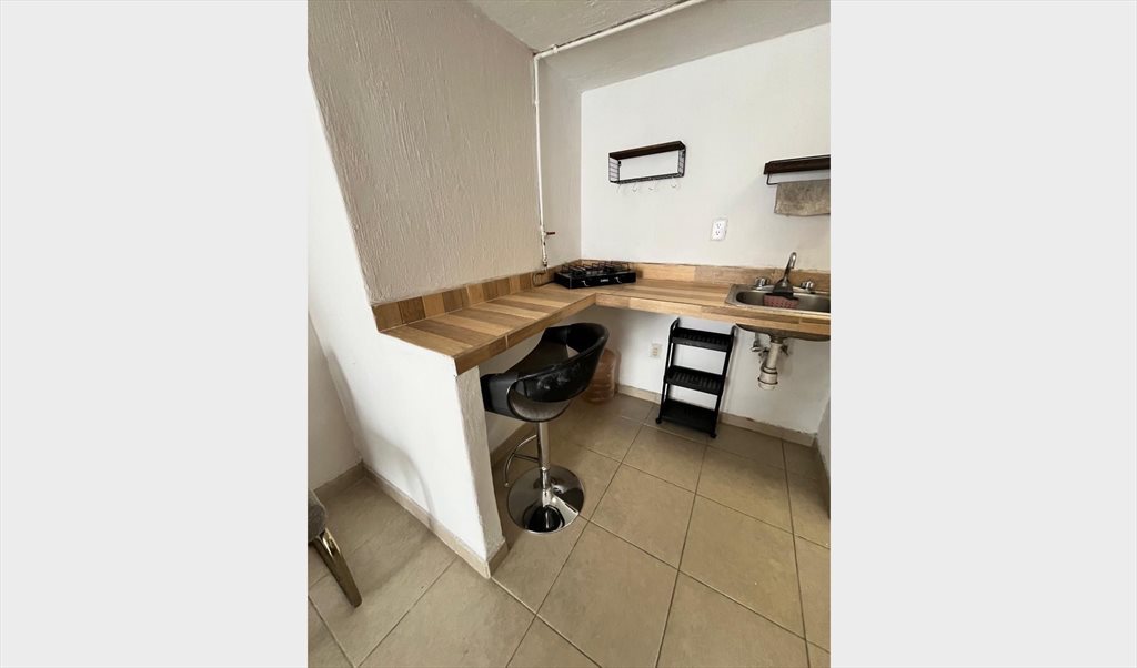 Contamos con un pequeño departamento con entrada independiente, el cual cuenta con aproximadamente 28 metros cuadrados, equipado con cocinera, estufa, y todos los servicios en el precio, es una excelente oportunidad por la ubicación y la privacidad que este lugar aporta a los que habitan en el, cualquier cosa estamos a la orden.