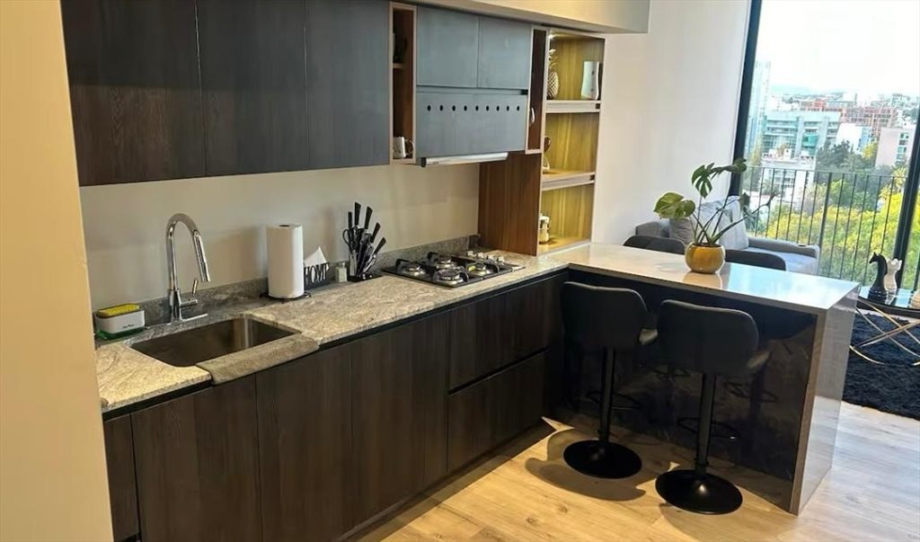 Se renta departamento de lujo en punto sau Paulo, 1 recámara doble, baño y medio, sofá cama matrimonial extra, piso 10, alberca amenidades varias, gimnasio, restaurantes y tiendas, cerca de glorieta colon, plaza patria, cerca andares, vigilancia 24 horas, estacionamiento privado