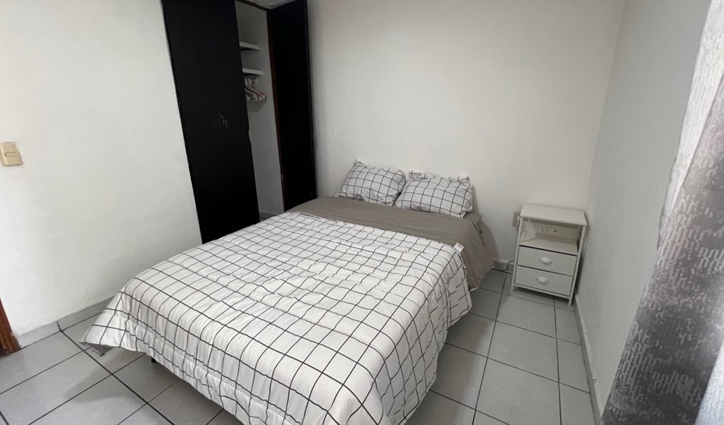Cómoda habitación con cama matrimonial y closet de dos puertas, en departamento amueblado y equipado con todos los servicios, internet 200MBps, luz, agua, gas, refrigerador, estufa, lavasecadora . Excelente ubicacion 5 minutos de UNIVA, UAG, UP, parque metropolitano, ruta de camiones a TEC de MTY, Chapultepec, Centro, Andares, central de autobús. A un semaforo de plaza galerias. Personas Responsables.