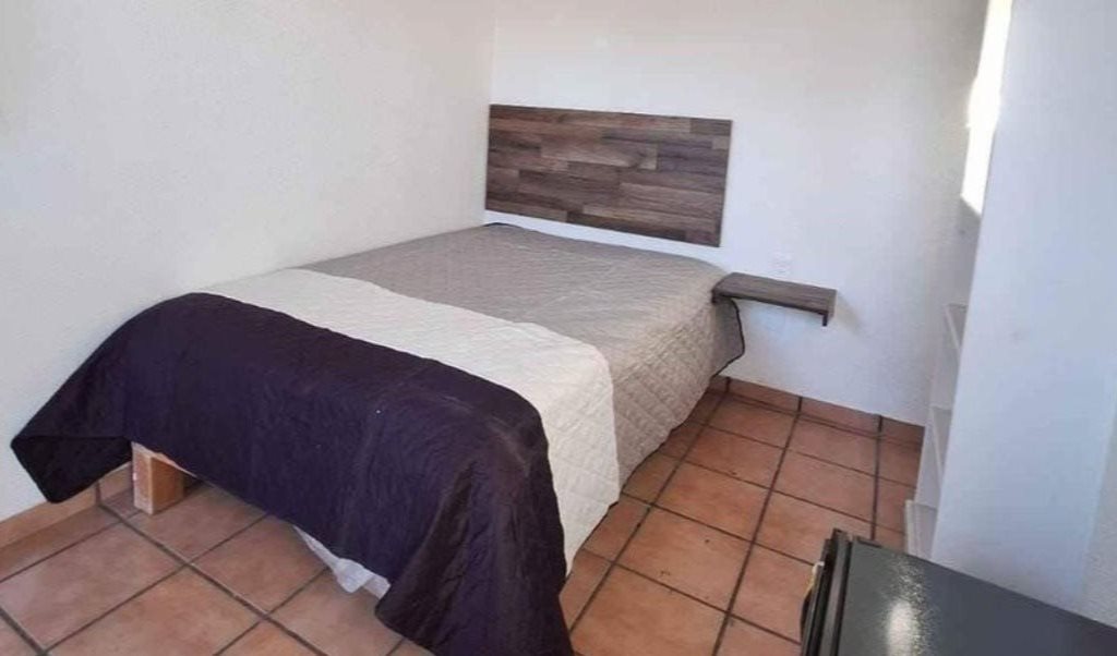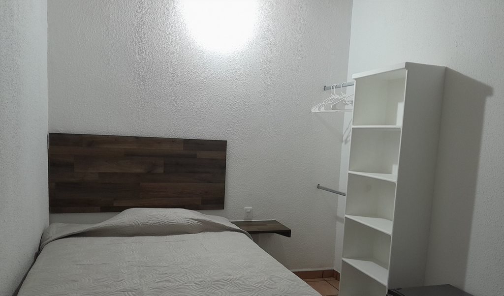 Habitación amueblada para caballero,colchón sabanas nuevas. Silla, mesa de trabajo, pequeño closer. Cocina equipada, terraza, agua caliente 24 horas, baño compartido. Patio interior para estacionar moto 🏍 , cámaras de vigilancia.Entrada independiente. A dos cuadras de Lopez Mateos, cerca de farmacias, café, Walmart expres, a dos cuadras parque. Se puede ir caminando a Plaza la Perla.