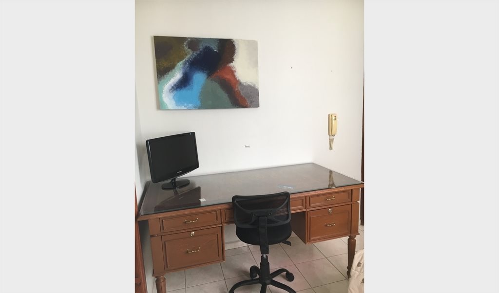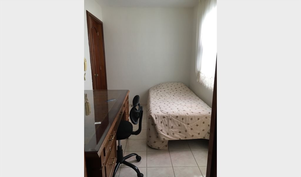 Bonita recamara en renta, cuenta con escritorio con cajones, credenza con cajones, cama , closet amplio, terraza. Bano completo dentro del área de la habitación