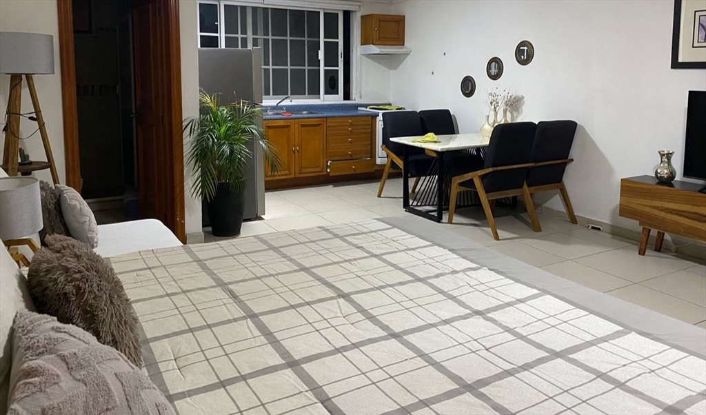 Recamara con cama king size , Refrigerador , cocina completa , comedor , etc