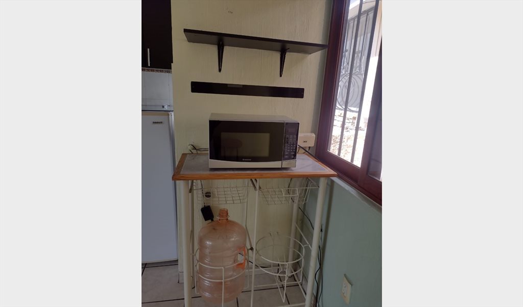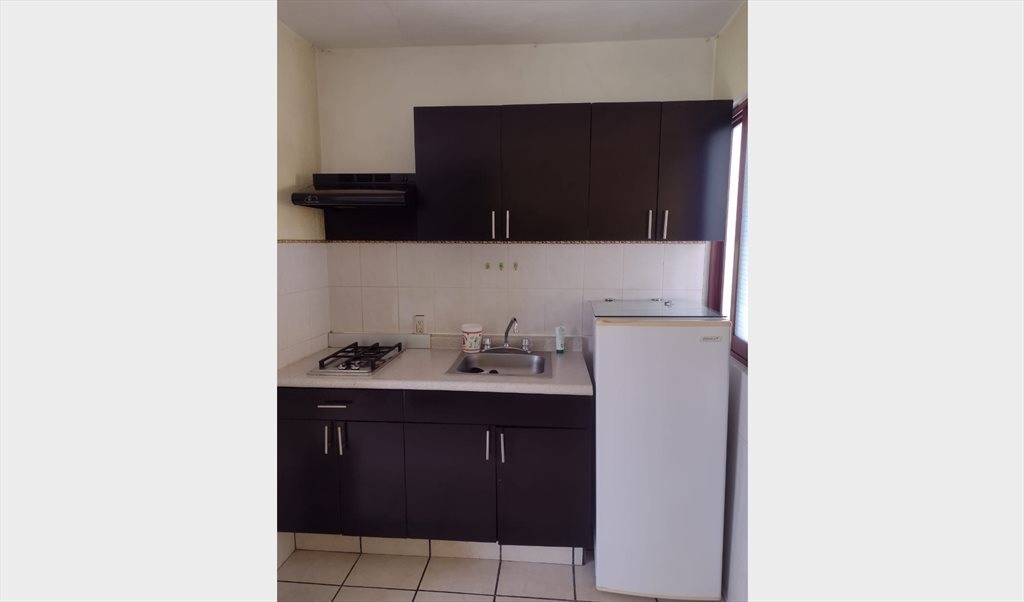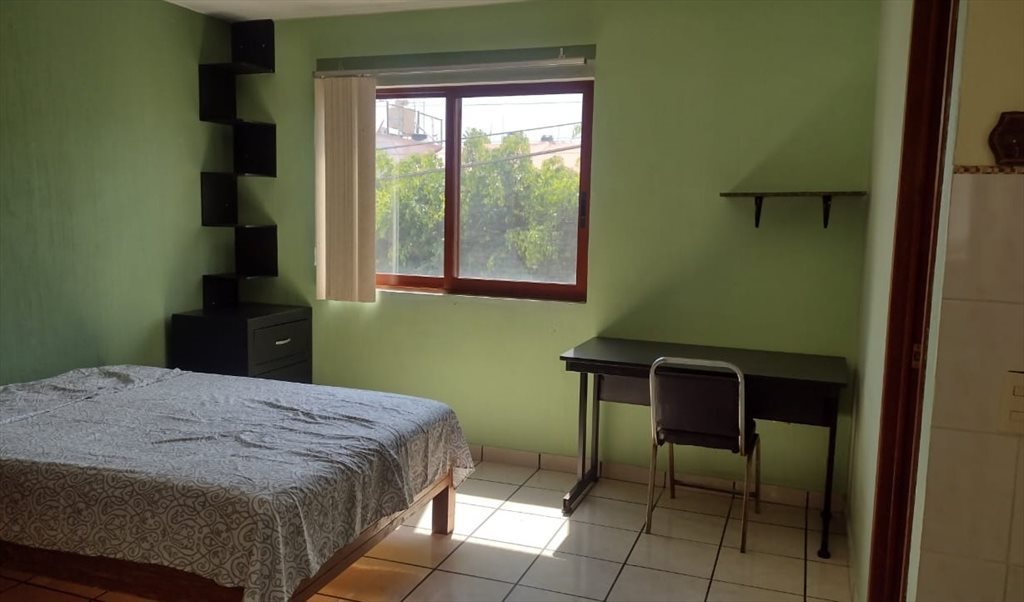 Rento estudio amueblado: cocineta, refrigerador, microondas, baño completo, clóset, cama matrimonial y escritorio. Servicios incluidos: internet, agua y luz, el gas corre por su cuenta. El estudio es en planta alta, con entrada independiente de la casa, es un lugar seguro con ingreso controlado, y vigilancia las 24 horas.