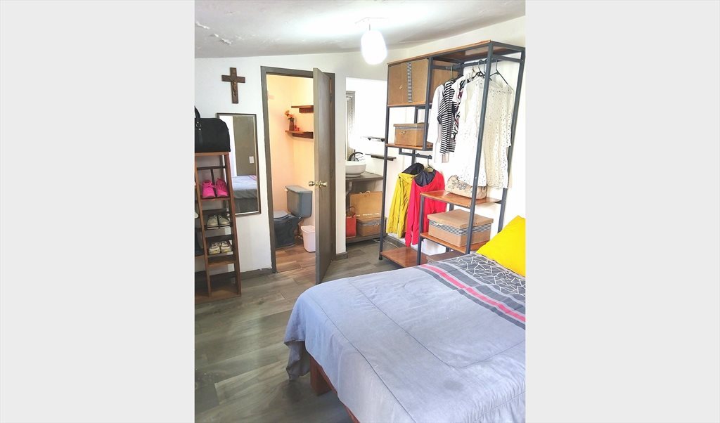Rento habitación pequeña con baño privado. Encontrarás cerca Gym, Farmacia 24 hrs, cafes, restaurantes, oxxos, Distrito La Perla, Plaza del sol y Plaza ciudadela a 12 minutos e Iglesias católicas a 5 minutos caminando.